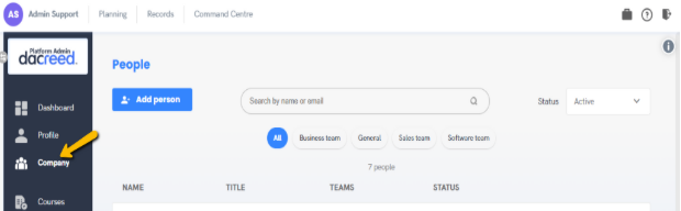 Click on the ‘Company’ tab in the main navigation.