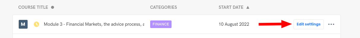 To assign categories to an existing course, or to change the already assigned categories, click on 'Edit Settings' button for the course you wish to assign categories.