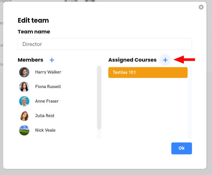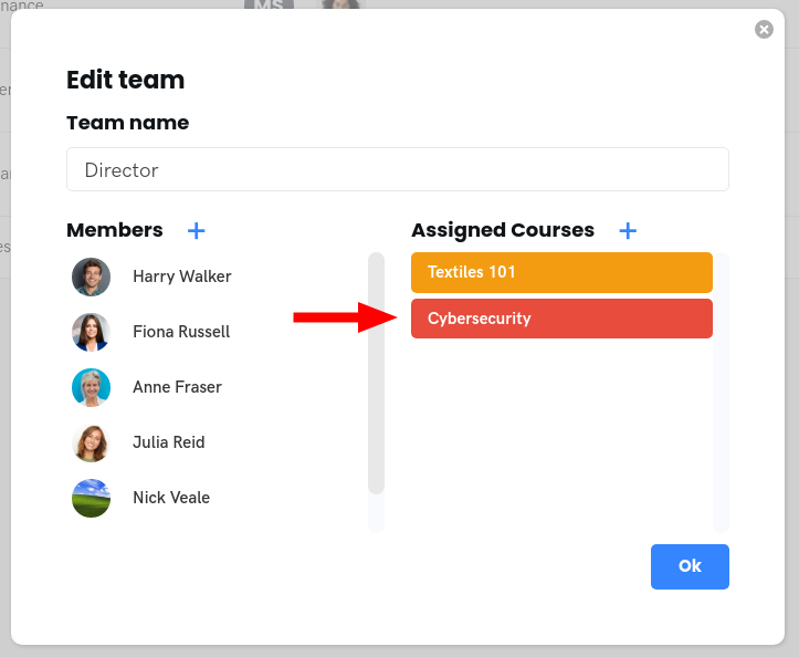 To assign teams to a course, or to change the already assigned teams, there are two ways to do this: