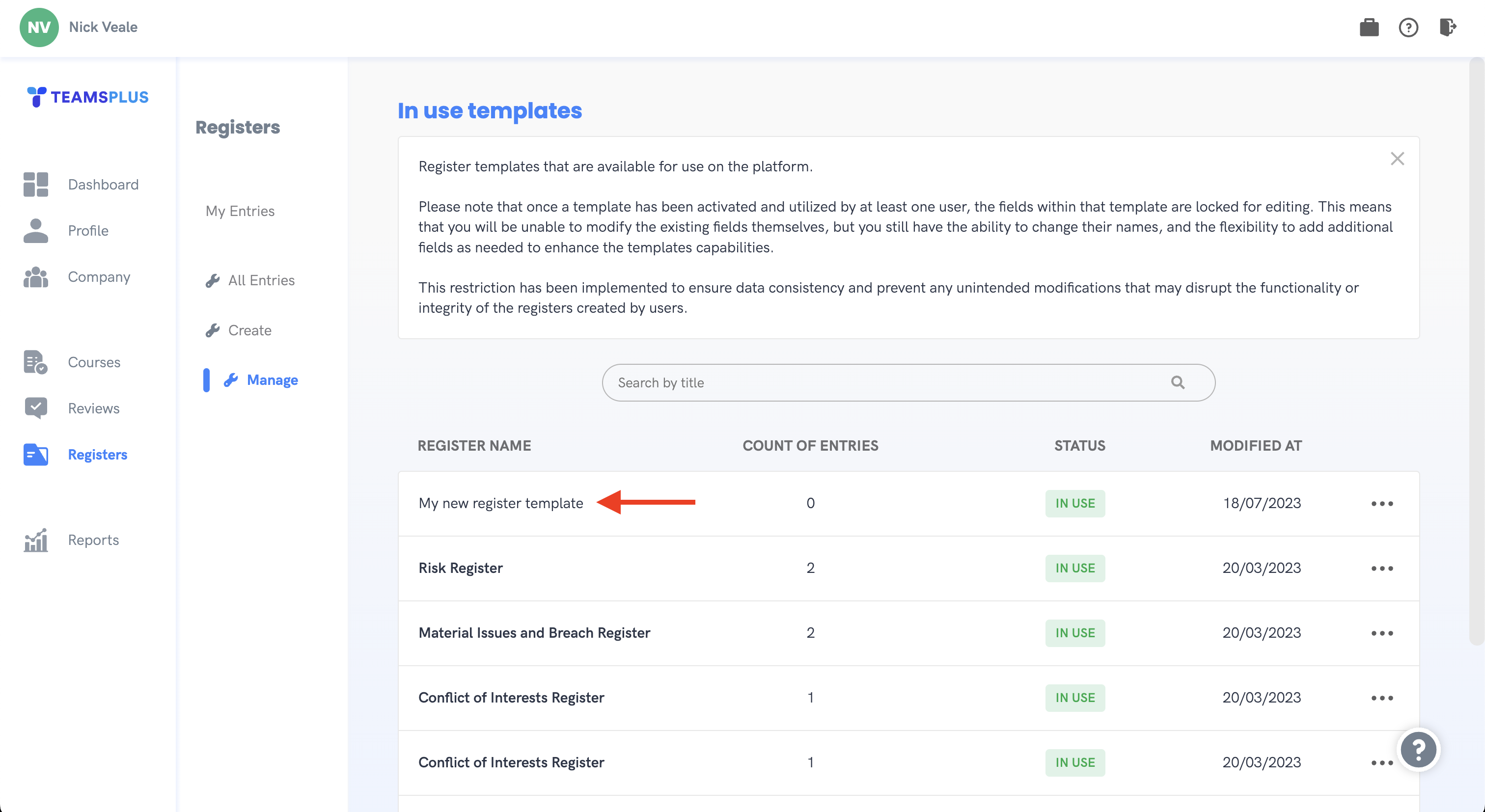 Once an Organisation has the Registers Feature enabled, an administrator can now Create, Modify and Activate Registers for their organisation.