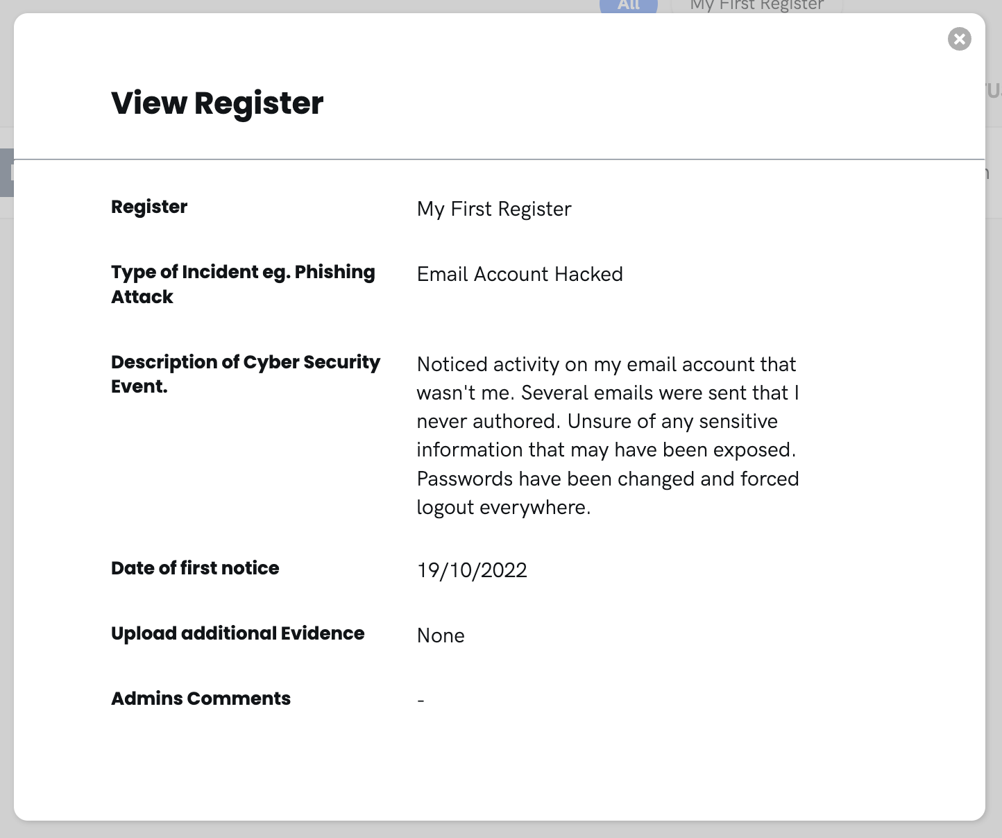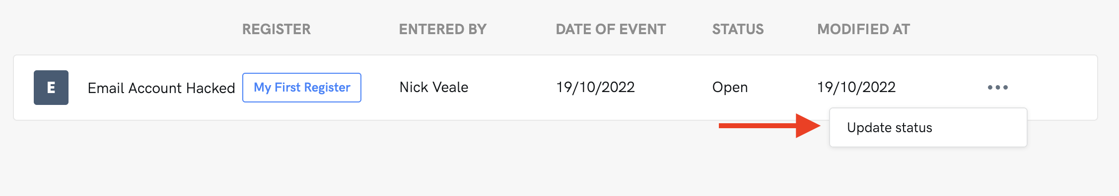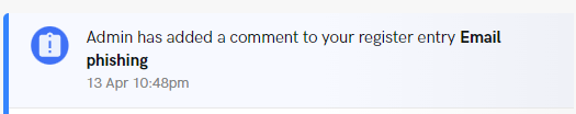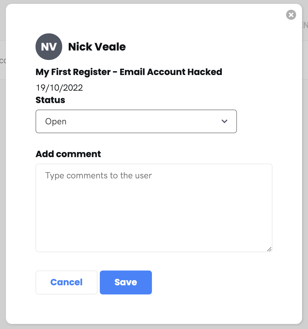 Changing the status of entry helps to manage reporting and actions of each register entry. Comments can help provide the user who submitted the register with insight into admin action on the subject.